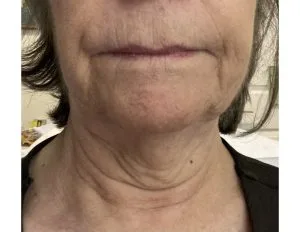 The overall results of the Jade E therapeutic facial are the reduction or elimination of fine lines and creases between and around the eyes, mouth and chin; the reduction or elimination of puffiness or dark circles under the eyes and improvement in tone in the sagging skin along the jaw line and neck area.